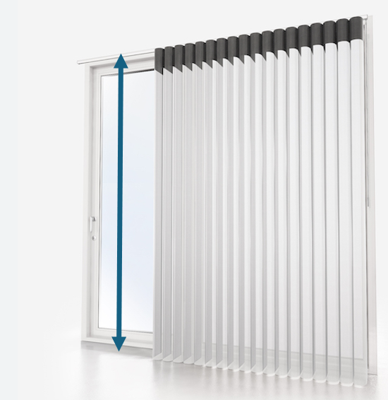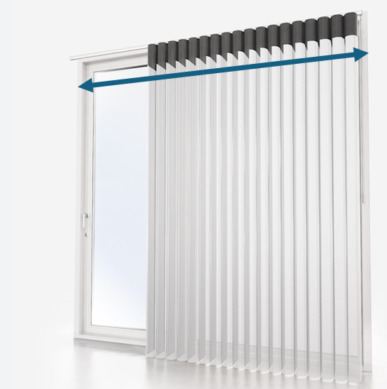 ![]() | Allusion Blinds are outside fit only. Just measure exactly where you would like the blind to fit, including the stacking amount. You need to decide if you are stacking one way left, one way right or centre open. To measure width, hook a metal tape over the outside edge of the width of the door/window frame, record the measurement. Next Decide your stacking amount, e.g., + 300mm-400mm of overhang and make sure to add this to the width measurement you took. Example: frame width 2000mm + one way stack of 300mm = 2300mm ordered width. TIP: Check your overall finished size will not impede any objects such as furniture. |