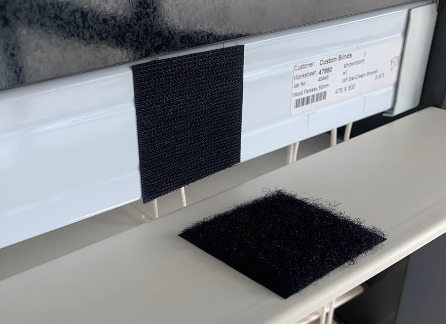 ![]() | Attach Pelmet securely by removing the strips on the velcro patches on the track, and pressing firmly along the pelmet and headrail where velcro patches meet. |