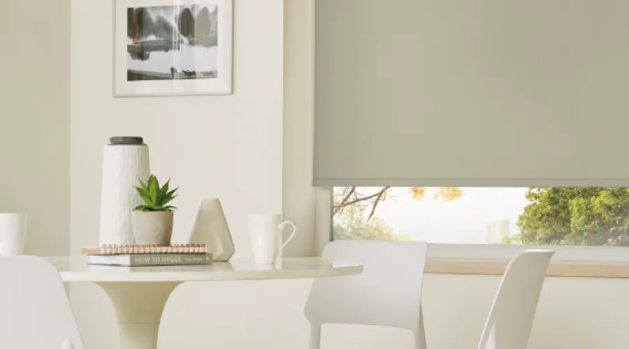 Thermal Blockout Roller Blinds are a neat and fuss-free window covering, when room darkening and privacy is required. Raised and lowered by a chain or can be ordered motorised for extreme ease of use. Thermal Blockout Rollers are available in a variety of contemporary colours and subtle textures, in widths up to 3000mm wide. Thermal Blockout Rollers are ideal for Bedrooms and Living Spaces. Please note the width size you order for Roller Blinds is the bracket to bracket size, the fabric is 33mm less. The fabrics in this category are all made of a woven polyester base cloth, backed with a thermal backing. Keep reading to learn more about the backing colour.