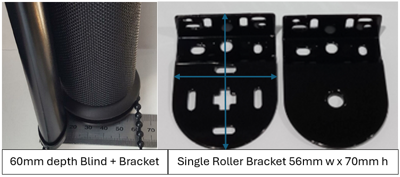 ![]() | INSIDE First check your frame depth. Single Roller needs 60mm frame depth for a flush fit. Alternatively, if you are ok with some of the blind sitting proud of the frame, the minimum depth we suggest is 40mm. A Single Roller bracket is 56mm x 70mm. It is important to scan the window and check for obstructions within the frame. OUTSIDE If you opt for outside fit make sure you have a thick architrave to screw into or consider fitting to wall space above. If screwing to wall space above make sure you have solid fixing behind. DOUBLE Double Blinds are best inside fit, the bracket measures 88mm x 150mm. Frame depth required for a flush fit is 90mm. Minimum depth we suggest is 70mm, some of the blind will sit proud. Reference image at end of this guide. |